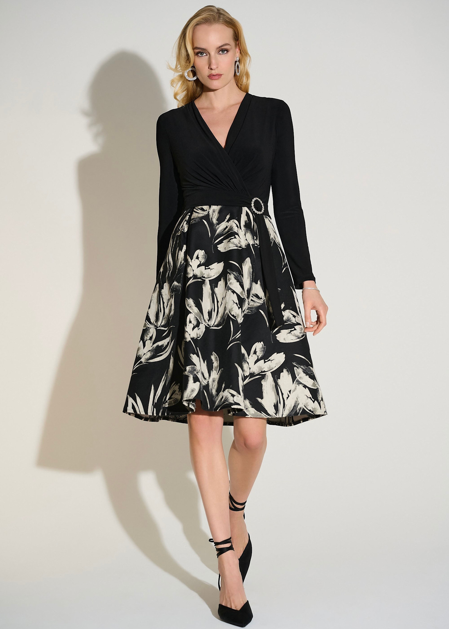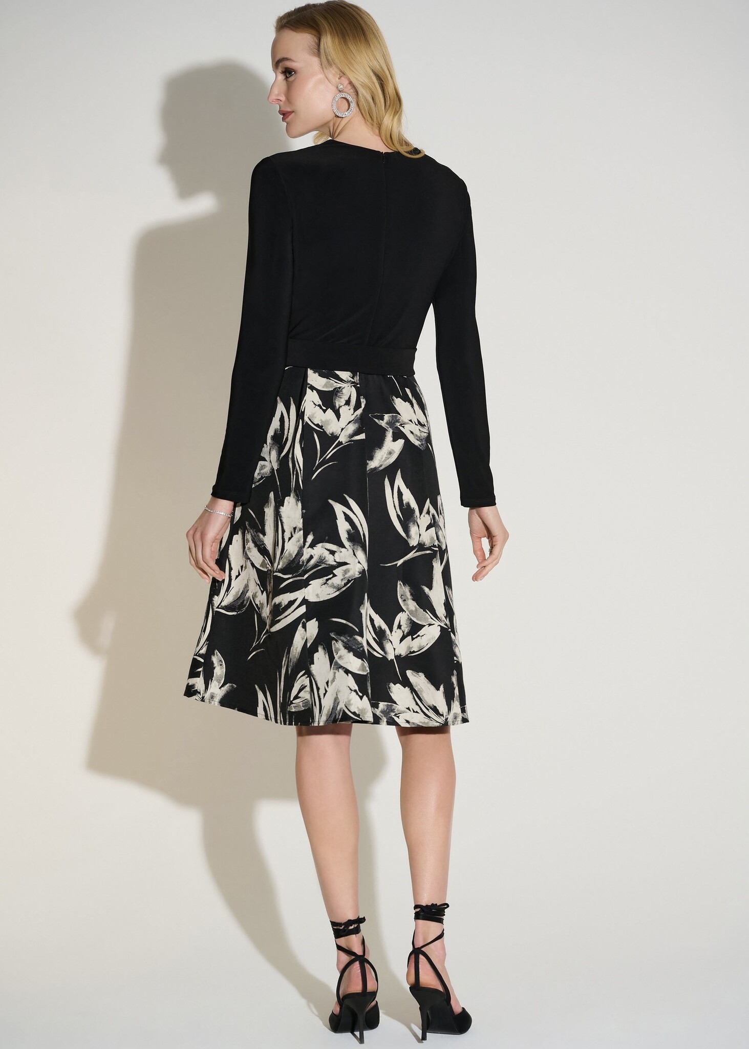 Silky Knit & Jacquard Floral Fit and Flare Dress