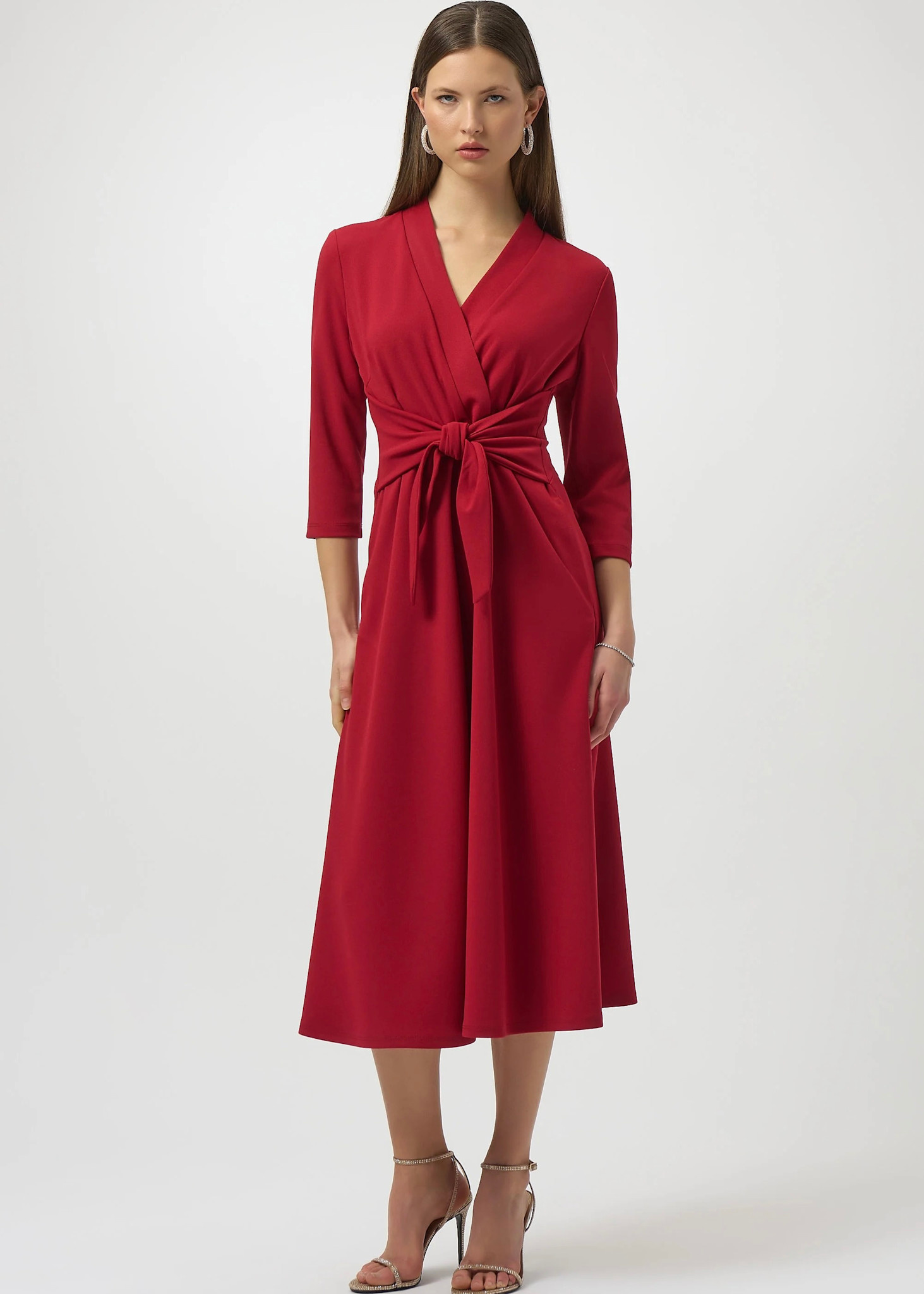 This midi-length wrap dress features a flattering V-neckline and a belted waist, perfect for both formal and casual occasions. Complemented by 3/4 straight sleeves, offer a sophisticated yet comfortable look.