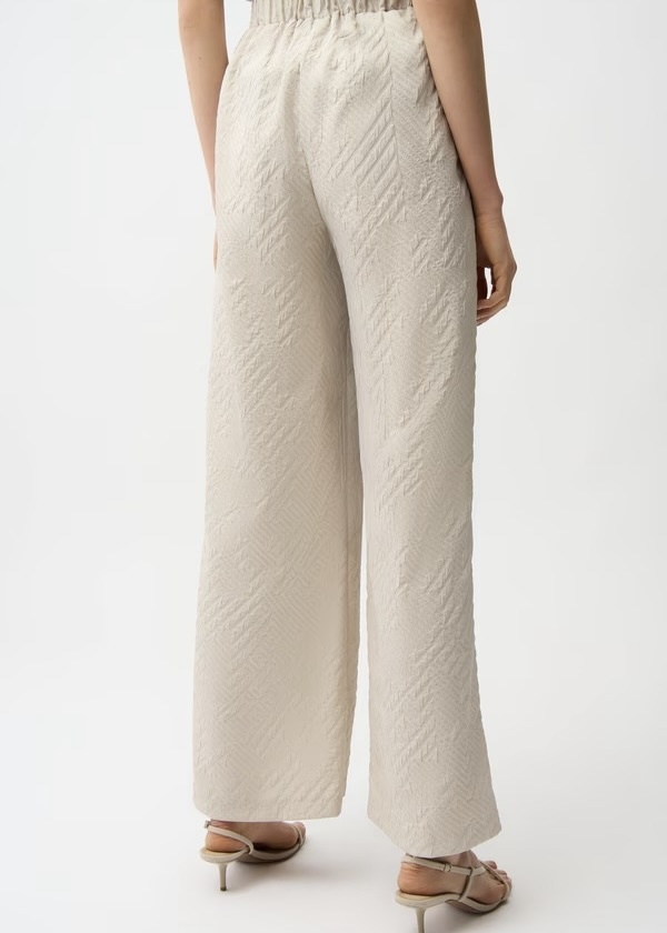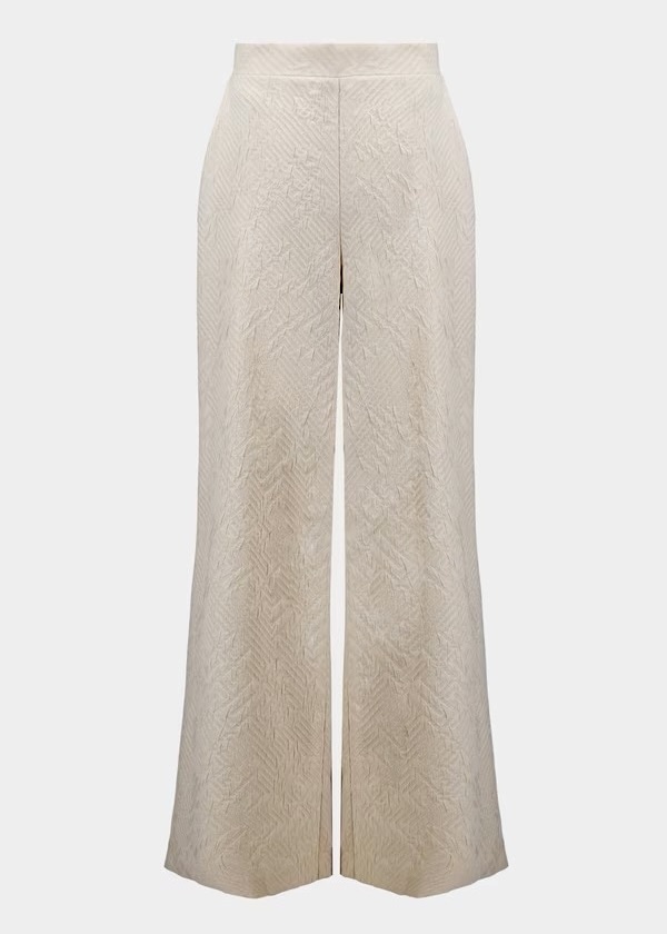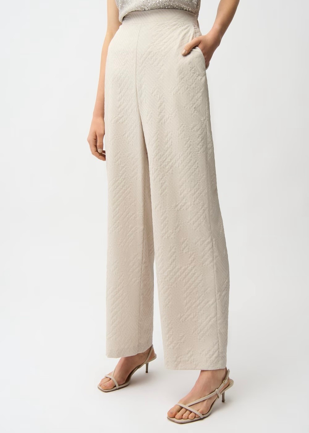 Jacquard Geometrical Texture Wide Leg Pull On Pant