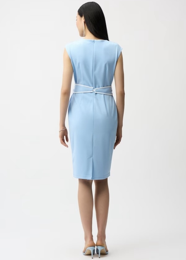 This stunning Joseph knee-length bodycon dress is designed to accentuate your style. The cowl-neck and sleeveless design makes this dress is perfect for both casual and semi-formal occasions. The belted and drawstring features add a touch of elegance.