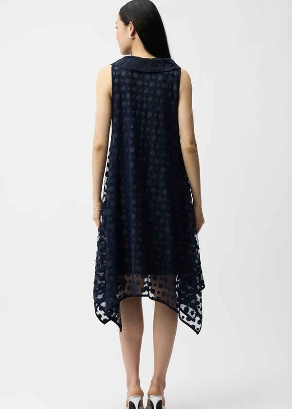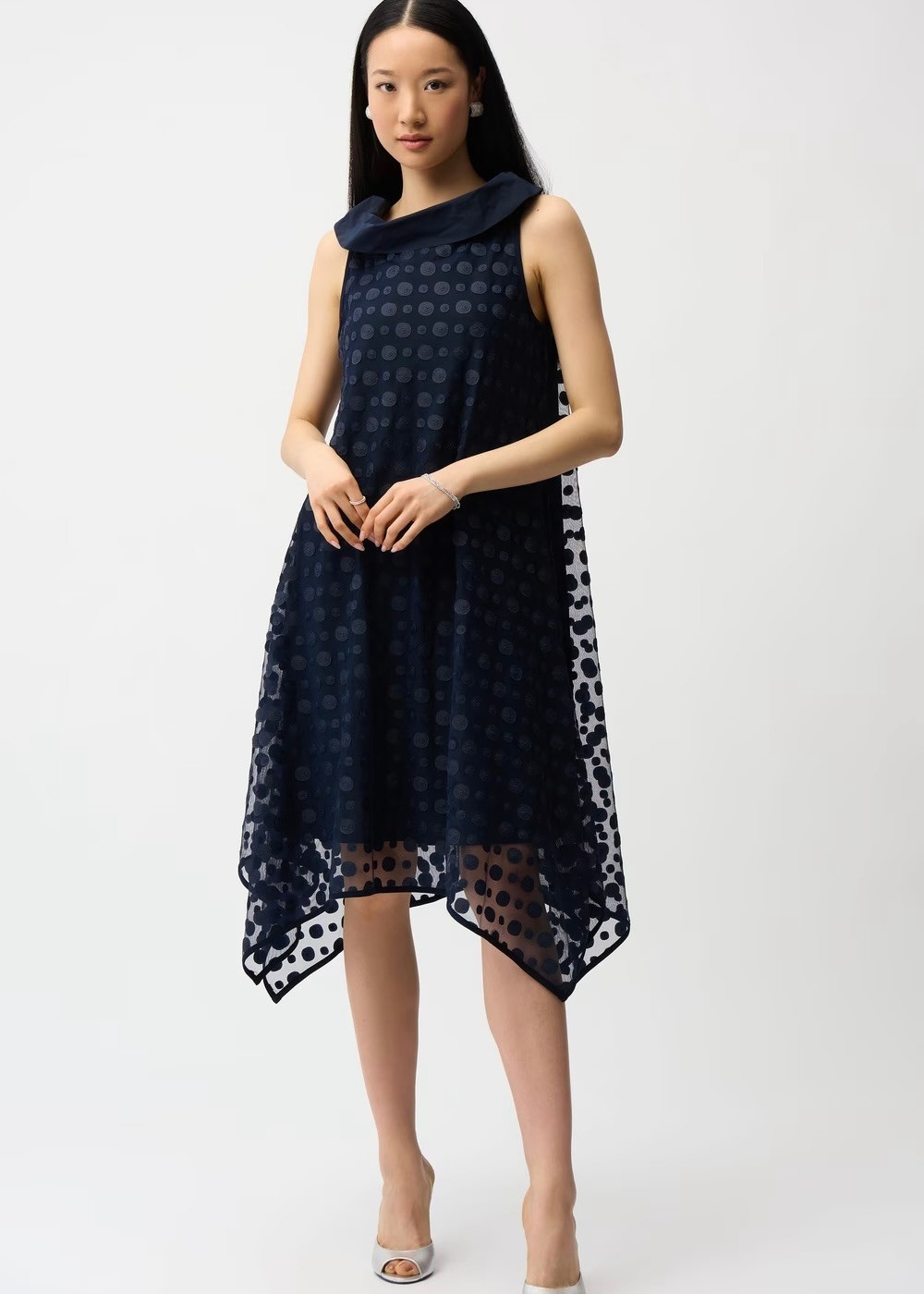 Dot Embroidered Mesh Handkerchief Dress w/ Cowl Collar