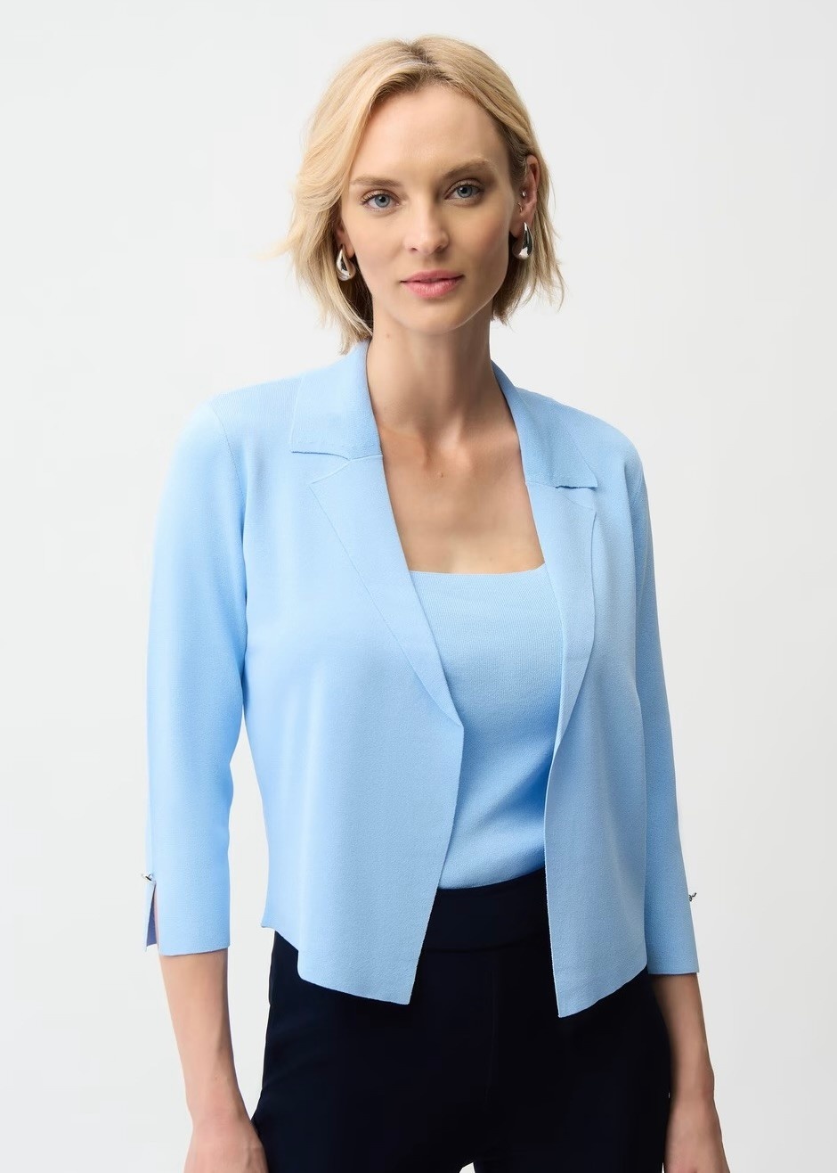 This soft knit 2 piece cami and cardigan offers both comfort and sophistication. The open-front cardigan with lapelsand 3/4 straight sleeves is a perfect match worn over the square neck camisole.