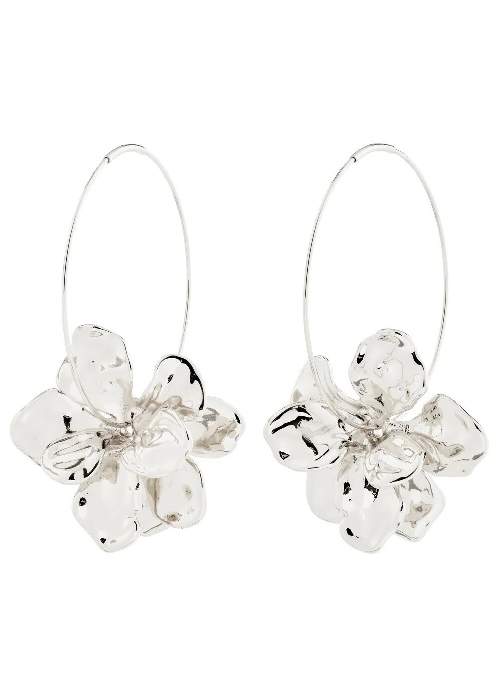 Big bloom energy! The silver-plated LUNITH hoops are your ultimate summer showpiece. Sleek hoops with oversized floral charms that bring a poetic touch and luxe boho vibes with a sculptural flower pendant.