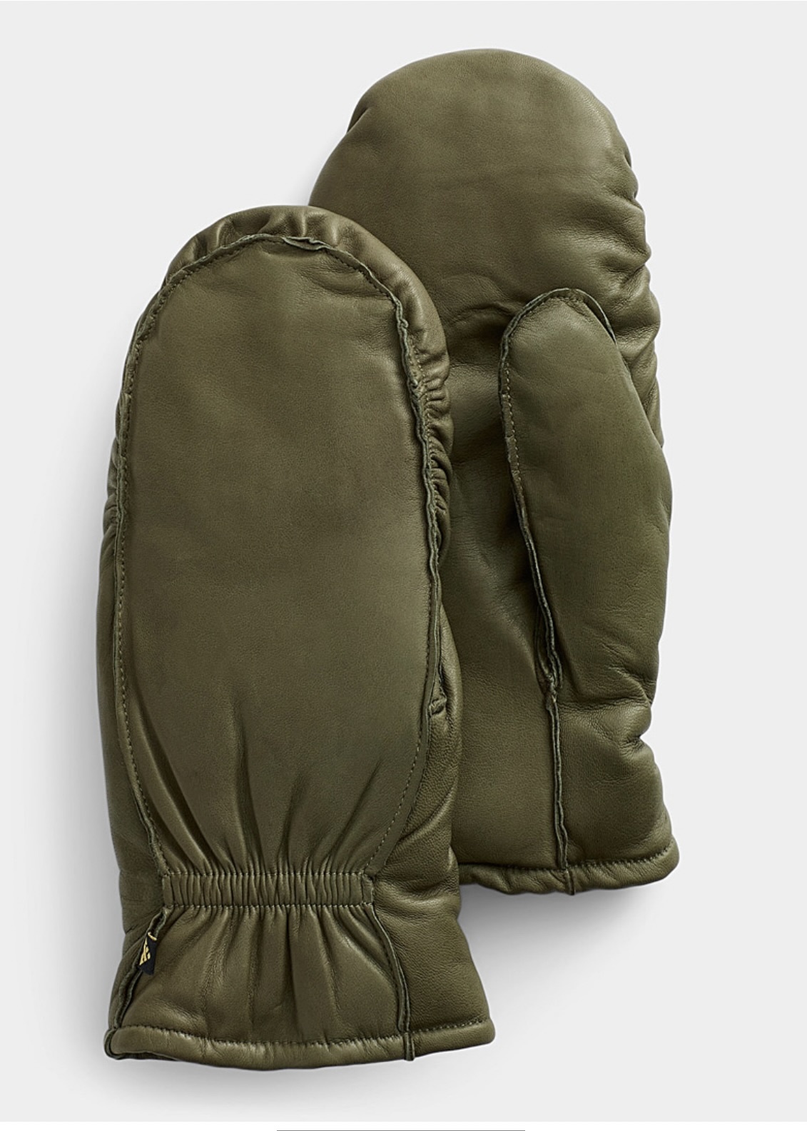 Soft sheepskin leather mitt with cozy inside micro fleece Thermolite insulation and "Cozy Fingers" fleece lining.