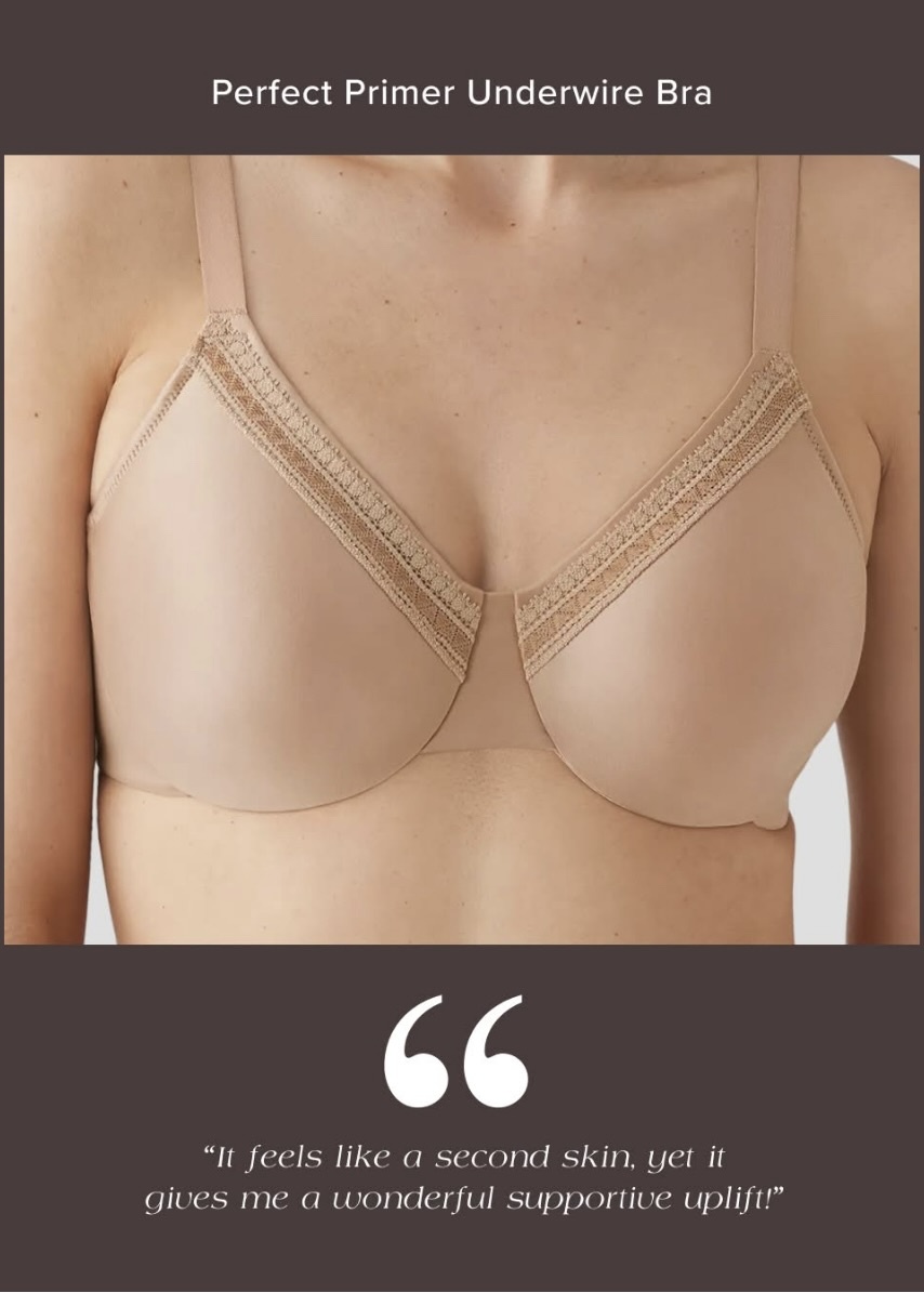 Designed to flex and move with you, our Perfect Primer Full Figure Underwire will keep you comfortable all day long. Smooth, supportive cups give you a natural shape and the kicked-in straps stay put, making this an ideal everyday bra.