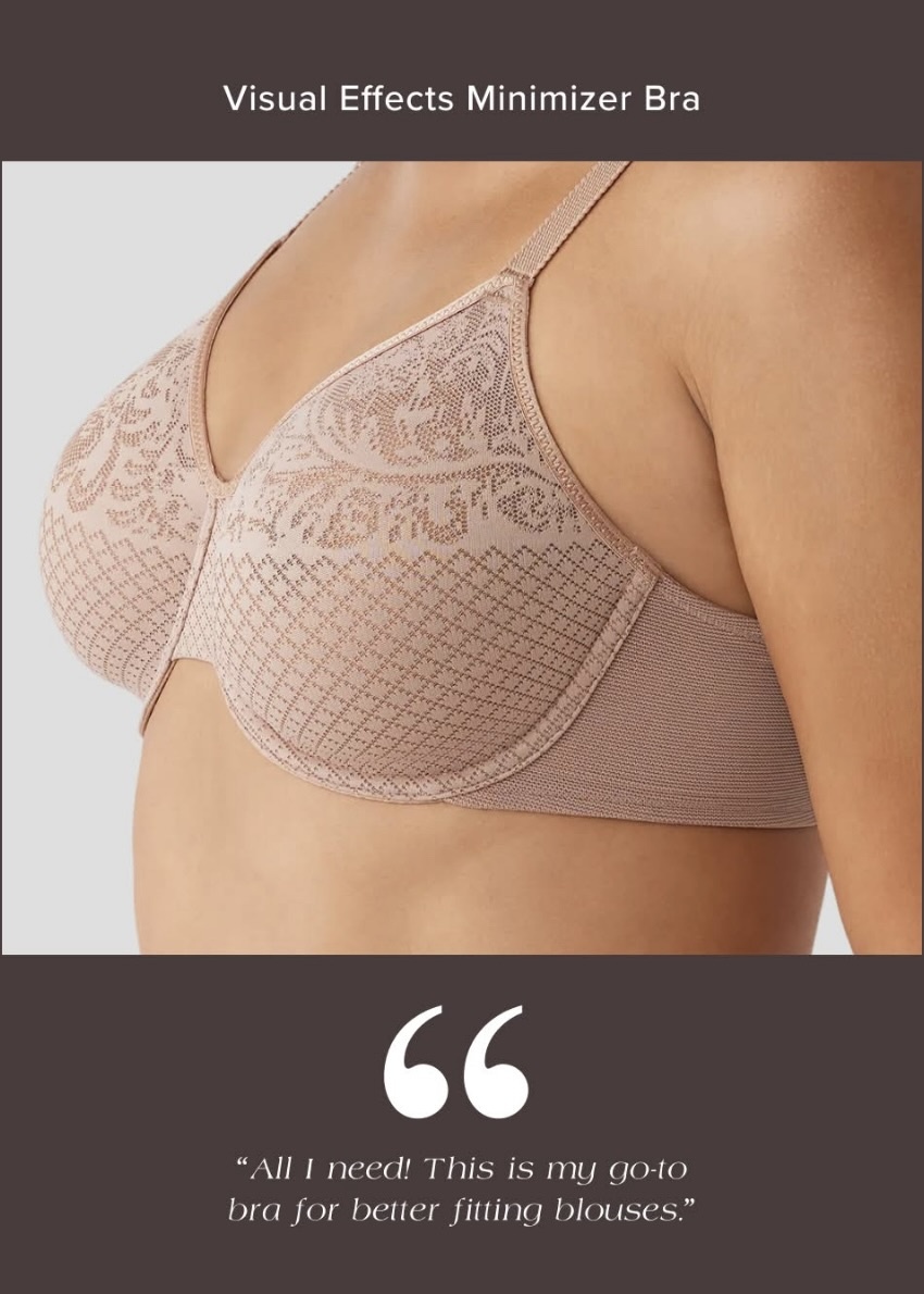Designed to reduce the bustline up to one inch, this pretty minimizer bra is the one you'll reach for again and again.
