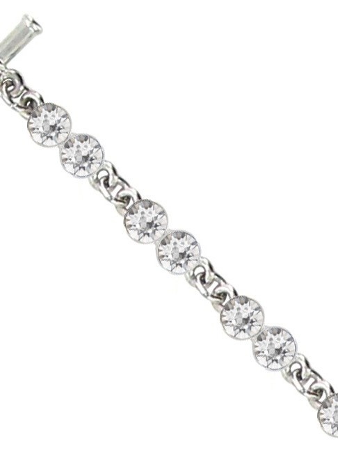 This dainty ‘tennis style’ bracelet features 16 Swarovski Crystals in delicate double bezel settings. Worn on its own or as an accent to other arm candy.