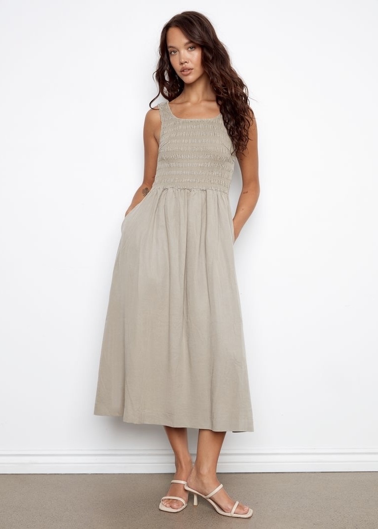 Sleeveless Maxi Dress w/Smocked Bodice