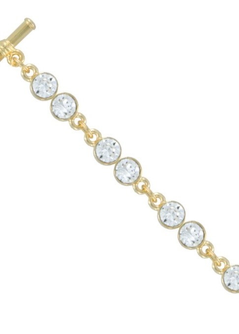 This dainty ‘tennis style’ bracelet features 16 Swarovski Crystals in delicate double bezel settings. Worn on its own or as an accent to other arm candy.