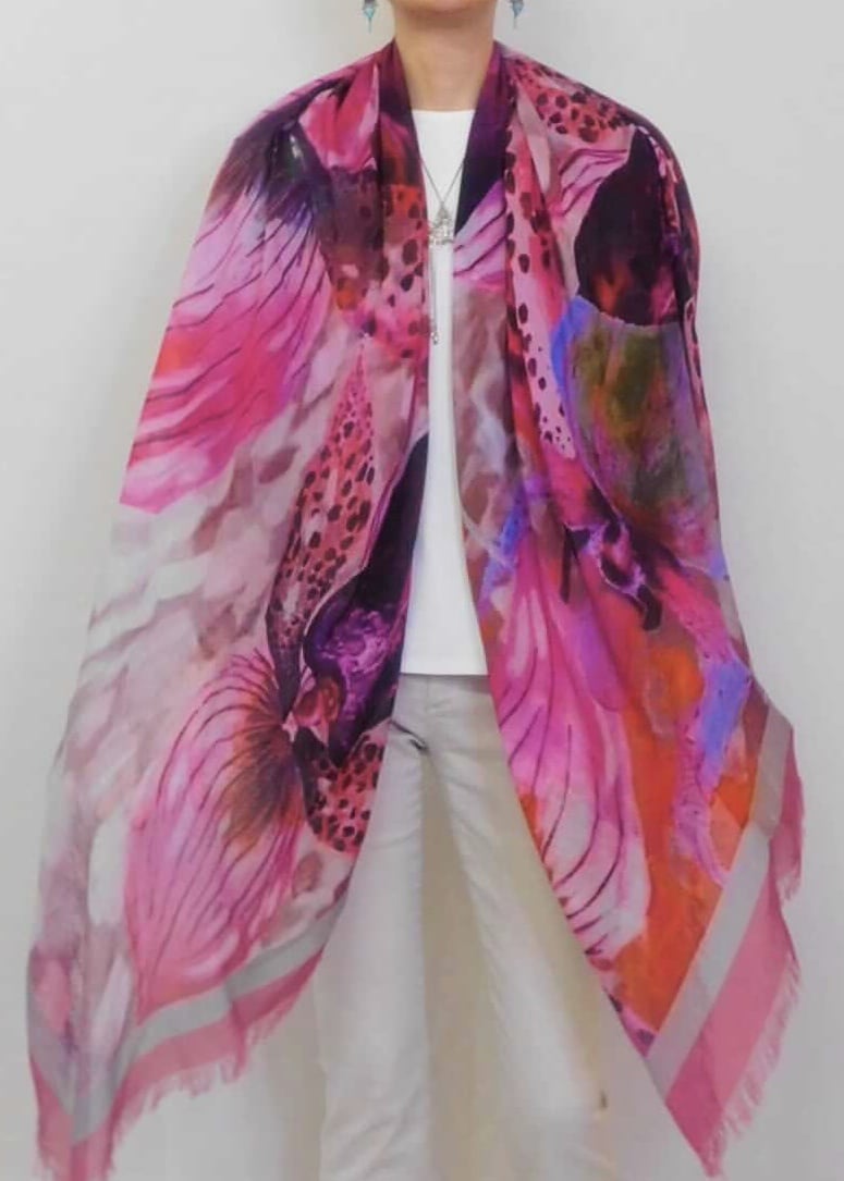 Mammoth in size, may be styled in numerous ways or worn as a love wrap.